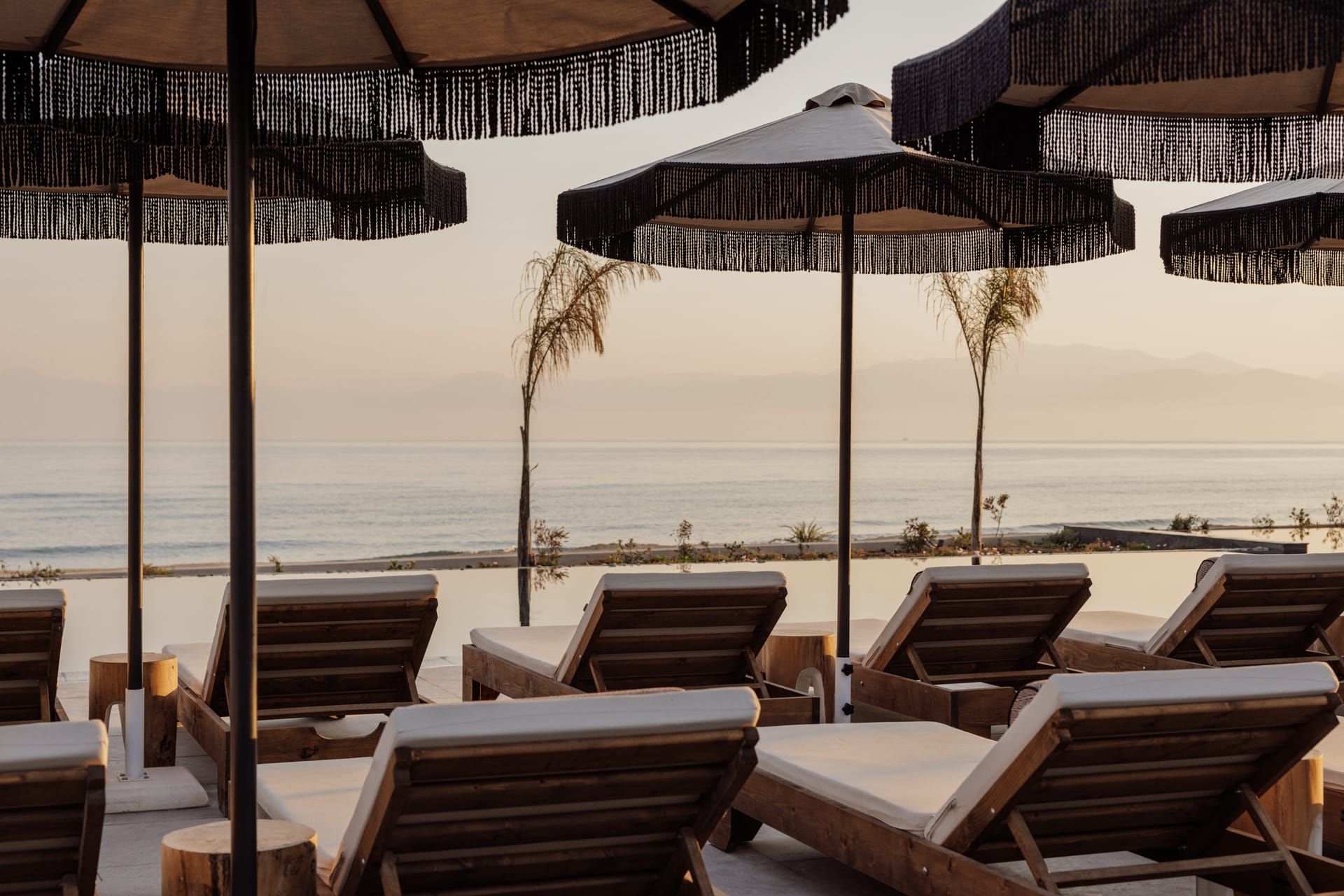 - Удобства на плажа: Хавлии, Шезлонги, Чадъри